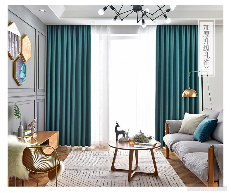 现货有黄色、灰色、孔雀蓝这三个字,经济实惠的窗帘布。